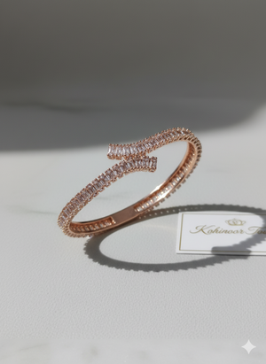 Experience the artistry of fine jewelry with the Artisan Cascade Bracelet. Meticulously set with lustrous golden pear and marquise-cut gems, interspersed with dazzling clear accent stones, this bracelet forms a graceful, flowing pattern. The double rose gold-plated band adds an extra layer of luxury and ensures a secure, stylish fit for any discerning individual.