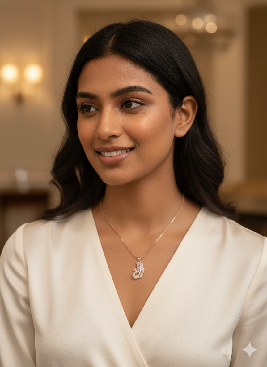 Illuminate your look with the modern brilliance of the 'Aurora Sparkle Curve Pendant.' This captivating design showcases a dynamic, curved silhouette, completely encrusted with an array of dazzling diamonds. Set in the warm glow of rose gold, it offers a contemporary sparkle that effortlessly elevates any ensemble, from elegant evening wear to chic daily attire. A versatile and radiant addition to your fine jewelry collection