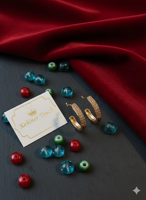 Elevate your style with the understated brilliance of the Luminous Embrace Hoops, designed to beautifully frame your face with dazzling pavé-set stones. Complementing their exquisite glow is the Solitaire Sparkle Necklace, featuring a captivating single stone pendant that rests delicately, radiating timeless elegance. Crafted for the modern woman who appreciates classic design and unparalleled sparkle, this set (or these individual pieces) from Kohinoor Touch seamlessly transitions from your daily glow to your most cherished moments. Discover the touch of luxury you deserve.